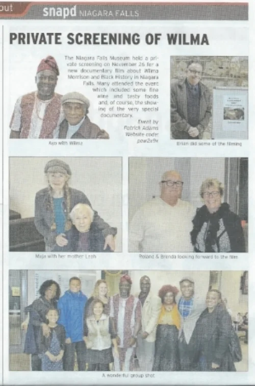 Subsequent to the presentation, the recorded music from it was used in the soundtrack to Ayodele Adewumi's film 'Wilma' about Niagara Falls, Ont. Black Historian and Preservationist Wilma Morrison. The film premiered on November 26, 2016 at the Niagara Falls Museum. Mr. Adewumi is director of the museum.
